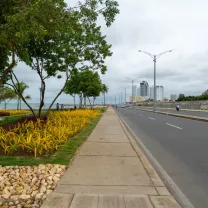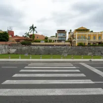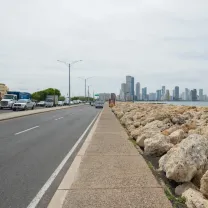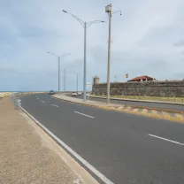 Santander Avenue is one of the most iconic roads in the city, as one of its main sections offers, on one side, a view of the sea and on the other, a view of the city walls. It is also the first road usually used by those arriving by air to the city, as it is the natural exit from the Crespo neighborhood (where the airport is located) to the Historic Center and Bocagrande, as well as to the Northern Zone. The avenue has two lanes in each direction (three in some sections towards the historic center).