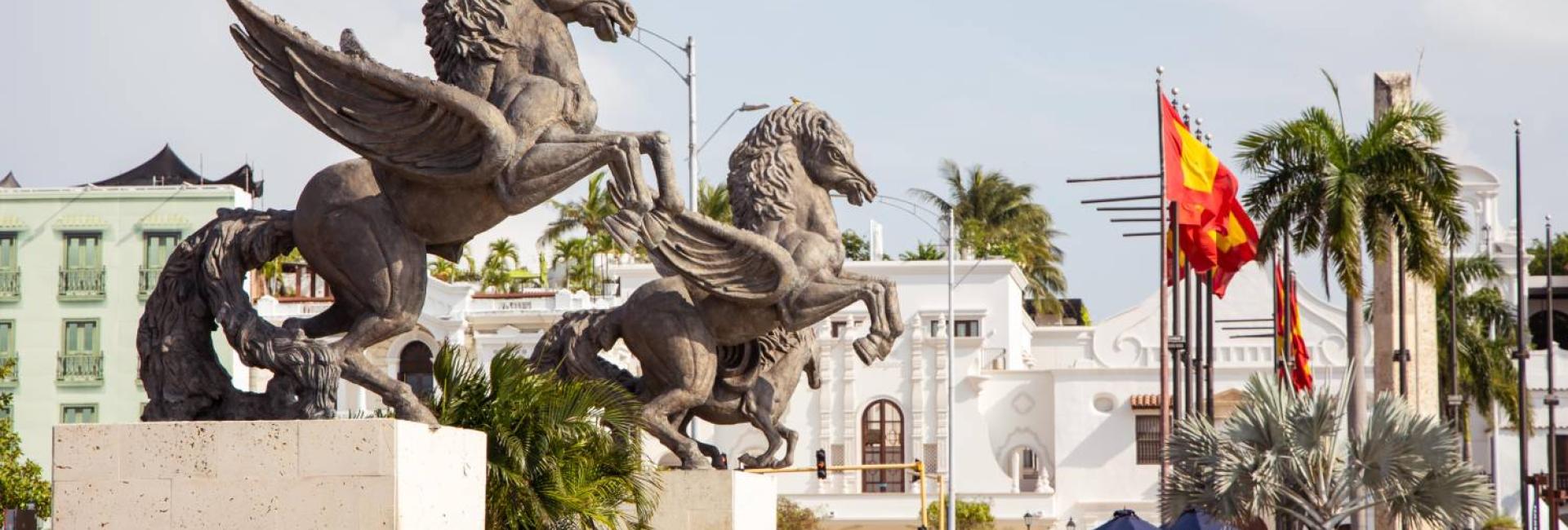 En pleno centro histórico de la ciudad, se encuentra la entrada marítima conocida como Bahía de las ánimas desde la cual puede observarse una vista privilegiada hacia la torre del reloj, la muralla y otros lugares históricos. La bahía, que fuera el epicentro del comercio en Cartagena hacia los años 50, está coronada por el emblemático muelle de los Pegasos uno de los atracaderos históricos principales del Caribe en el que hoy encontramos yates y embarcaciones lujosas, así como restaurantes flotantes. Las dos icónicas estatuas de pegasos que le dan nombre al lugar no son las originales. Alrededor del origen y posterior desaparición de los primeros pegasos persiste un halo de misterio. La bahía cuenta con restaurantes flotantes y atracciones permanente como el barco museo Galeón Bucanero.