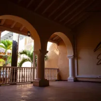 Esta bella casa de estilo colonial, debe su nombre al hecho de que fue la primera residencia de Simón Bolívar en la ciudad de Cartagena. En 1812, mientras vivía en ella, escribió el célebre Manifiesto de Cartagena. En Cartagena se cuenta que quienes vivieron en ella tras la muerte de Bolívar fueron deshaciéndose e incluso quemando algunas de las pertenencias del libertados y mobiliario original de la casa por miedo a sus fantasmas. De hecho, la casa llegó a estar en ruinas hasta que, tras la declaración de Cartagena como ciudad patrimonio, fuera restaurada por el Banco de la República.