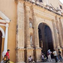 Llamada oficialmente Catedral Basílica Metropolitana de Santa Catalina de Alejandría, la construcción de este templo católico comenzó en 1577, en el lugar donde se levantaba una humilde iglesia de madera y paja. Sin embargo, no fue hasta ya entrado el siglo XVII (1612) cuando se pudo finalizar pues, en medio de ese proceso, en el año 1586, el templo fue parcialmente destruido por el pirata inglés Drake y sus hombres, en su invasión y saqueo a la ciudad, hecho que, además, originó la construcción de las murallas.