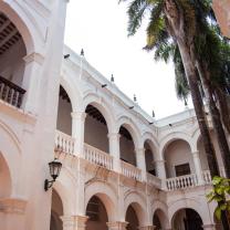 La construcción, conocida como Palacio de la Inquisición, está considerada como el mejor ejemplo de la arquitectura civil en Cartagena del siglo XVIII. Se levanta a partir de la unión de dos casas que el Tribunal del Santo Oficio había arrendado desde 1610, cuando inició sus actividades en la ciudad, las cuales fueron demolidas para construir una sede más amplia a la que luego se incorporarían construcciones colindantes, incluyendo antiguas cárceles secretas.