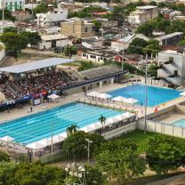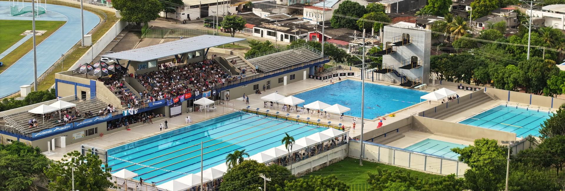 Complejo acuático “Jaime González Johnson”. Sede de clubes de natación locales. Infraestructura de 10 carriles, pozo de clavado, dos piscinas de calentamiento.